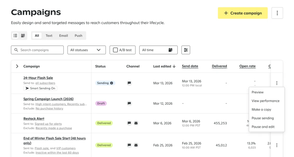 If you schedule a campaign and notice that one of your messages needs to be changed, you can pause your campaign and edit each message within it. You can also edit a campaign to add or remove messages.