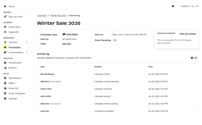 View user and timestamp for actions taken on campaigns