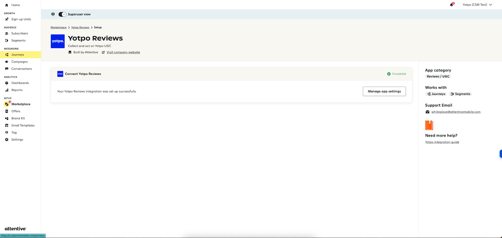 Complete the following steps to install the Yotpo Reviews app in Attentive: