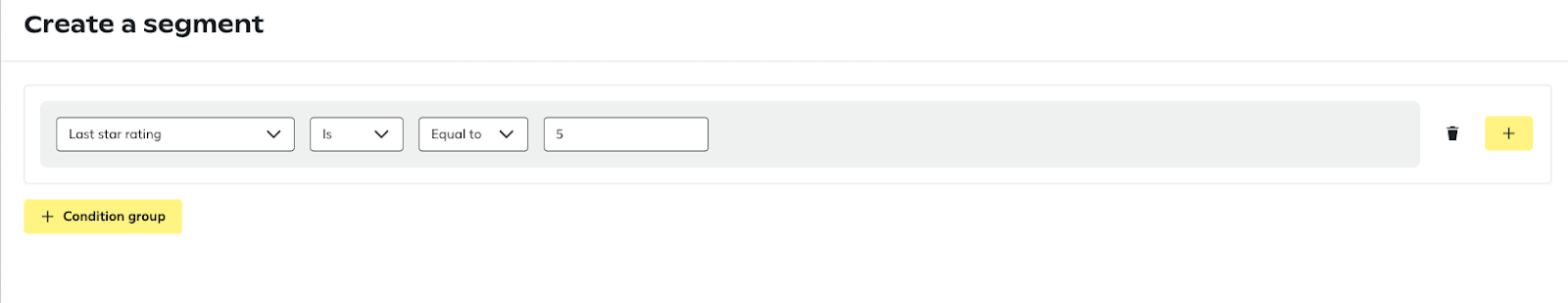- Choose a relevant Yotpo attribute, such as Total Reviews or Last Star Rating, to define your audience.