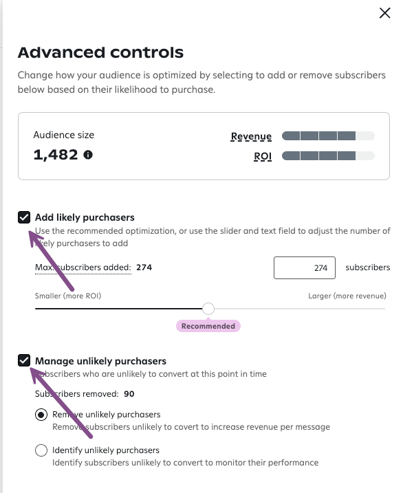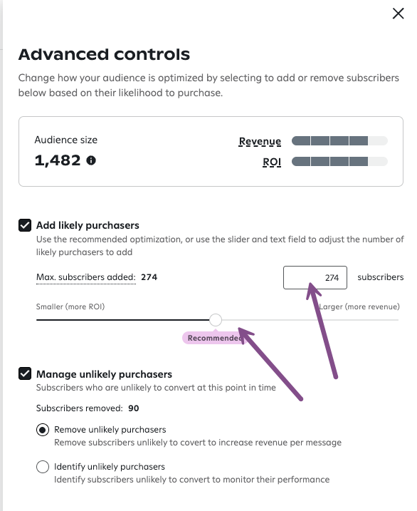 - Add likely purchasers: Check to add subscribers that Audiences AI considers likely to make a purchase.