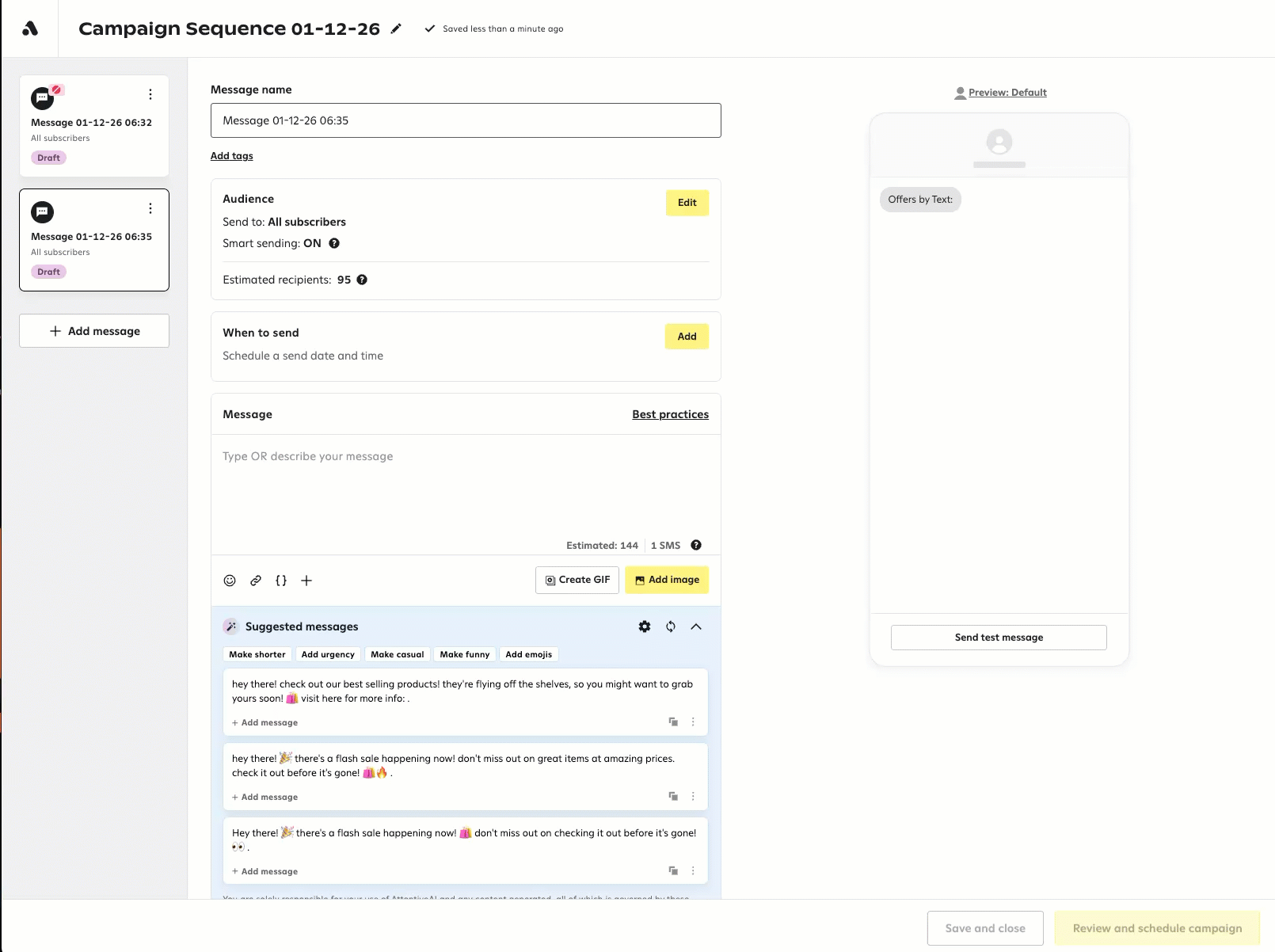 - SMS Optimization: Use MMS for product images and keep product names short to accommodate character limits.