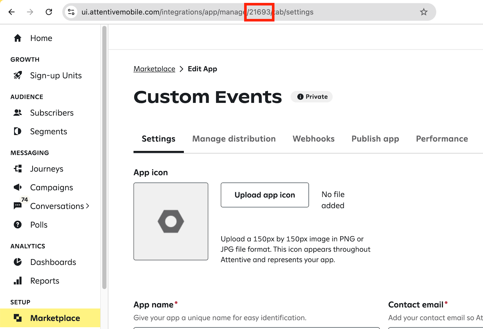 - Copy the App ID from the URL of your Custom App, you’ll need this for later