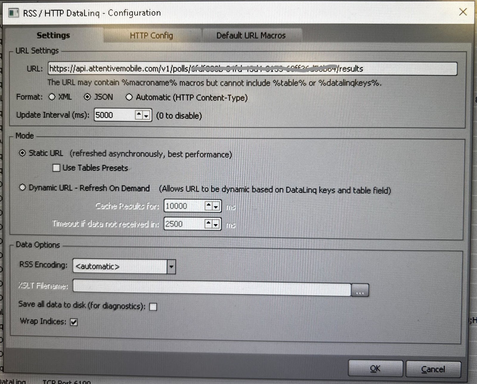 In the Setting tab, enter the URL as shown in the curl example above (https://api.attentivemobile.com/v1/polls/{POLL_IDENTIFIER}/results)