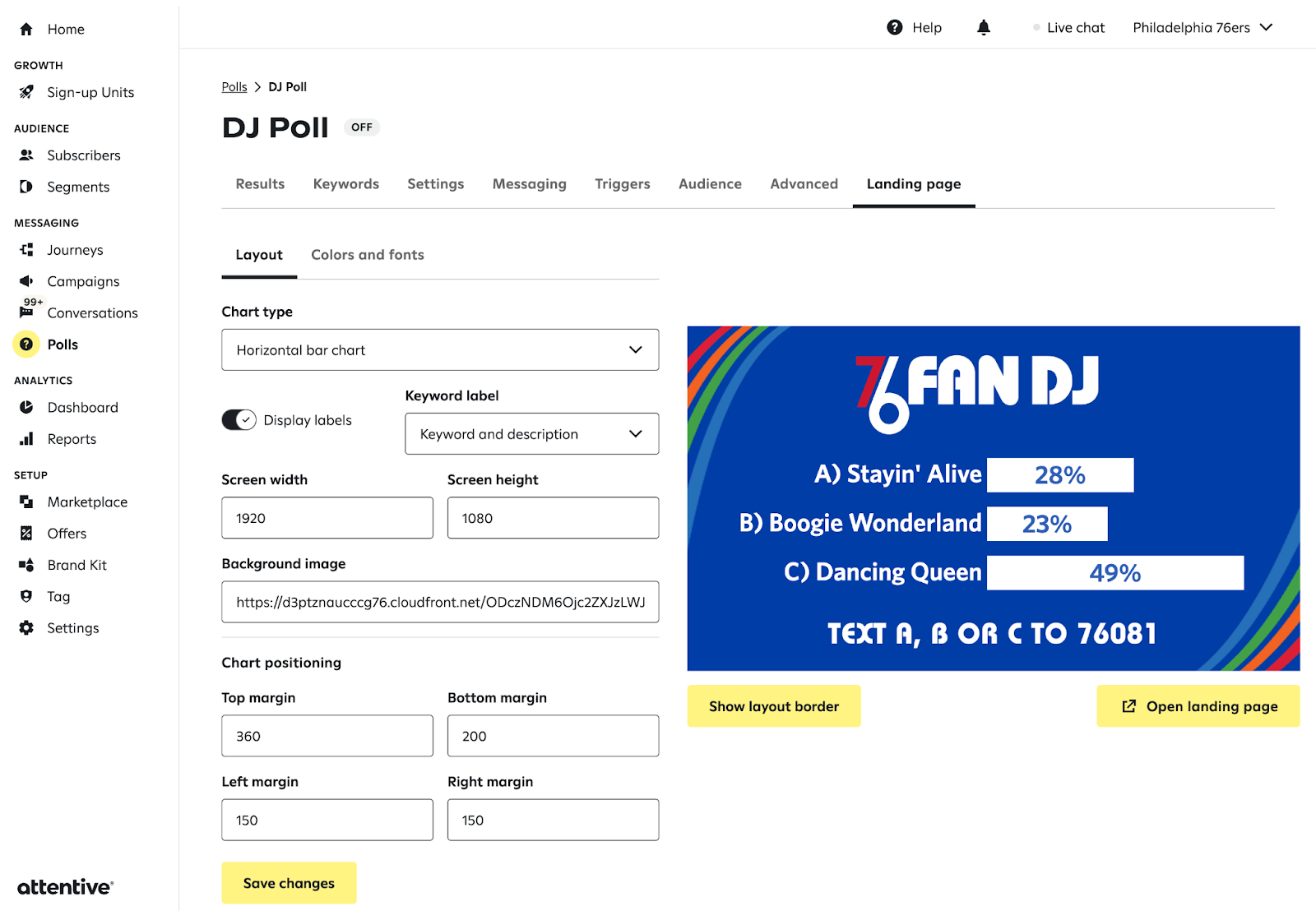 - Paste the url into the Polls > Landing Page > Background image field