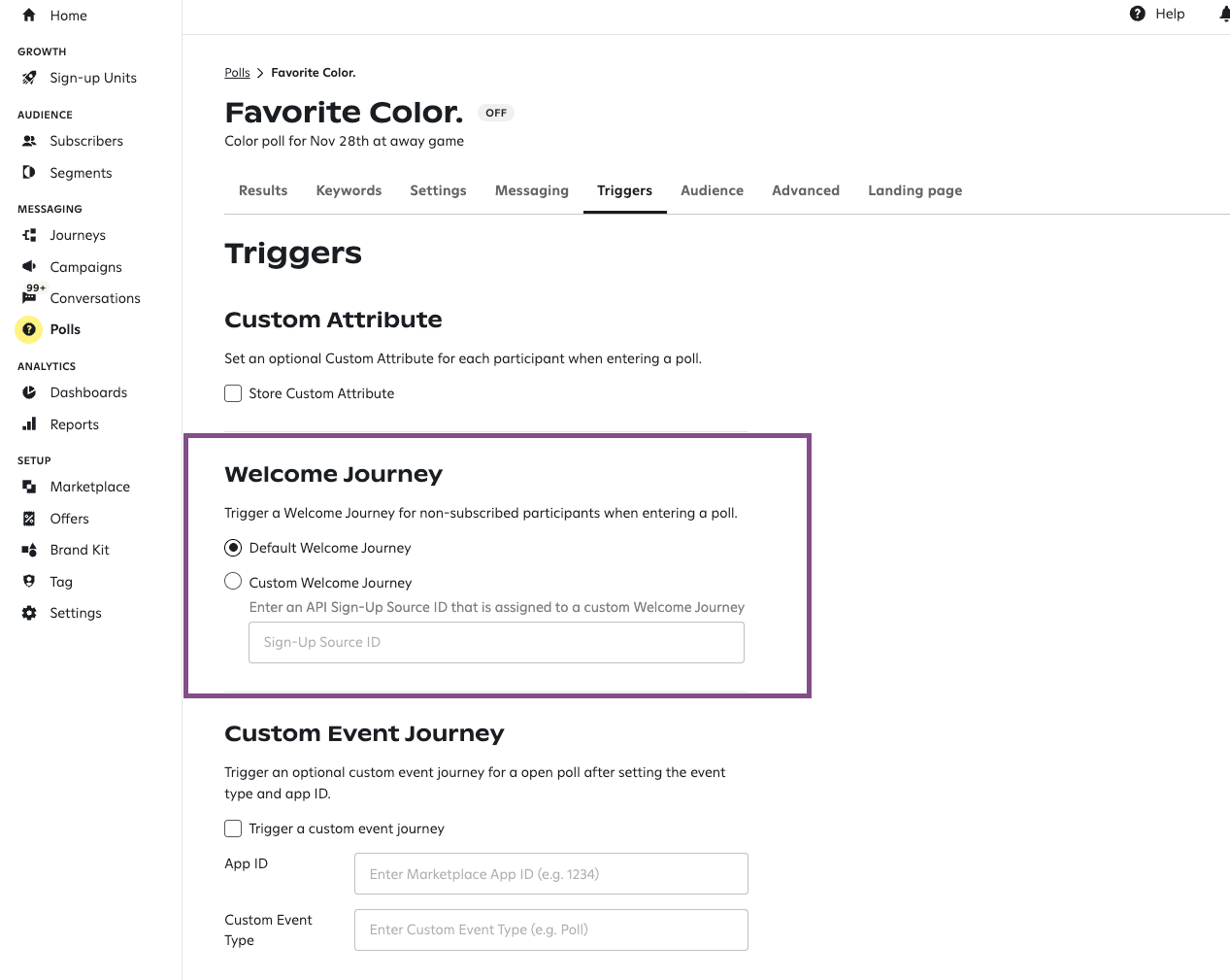 Use this option if you want to use a custom welcome journey for a poll.
