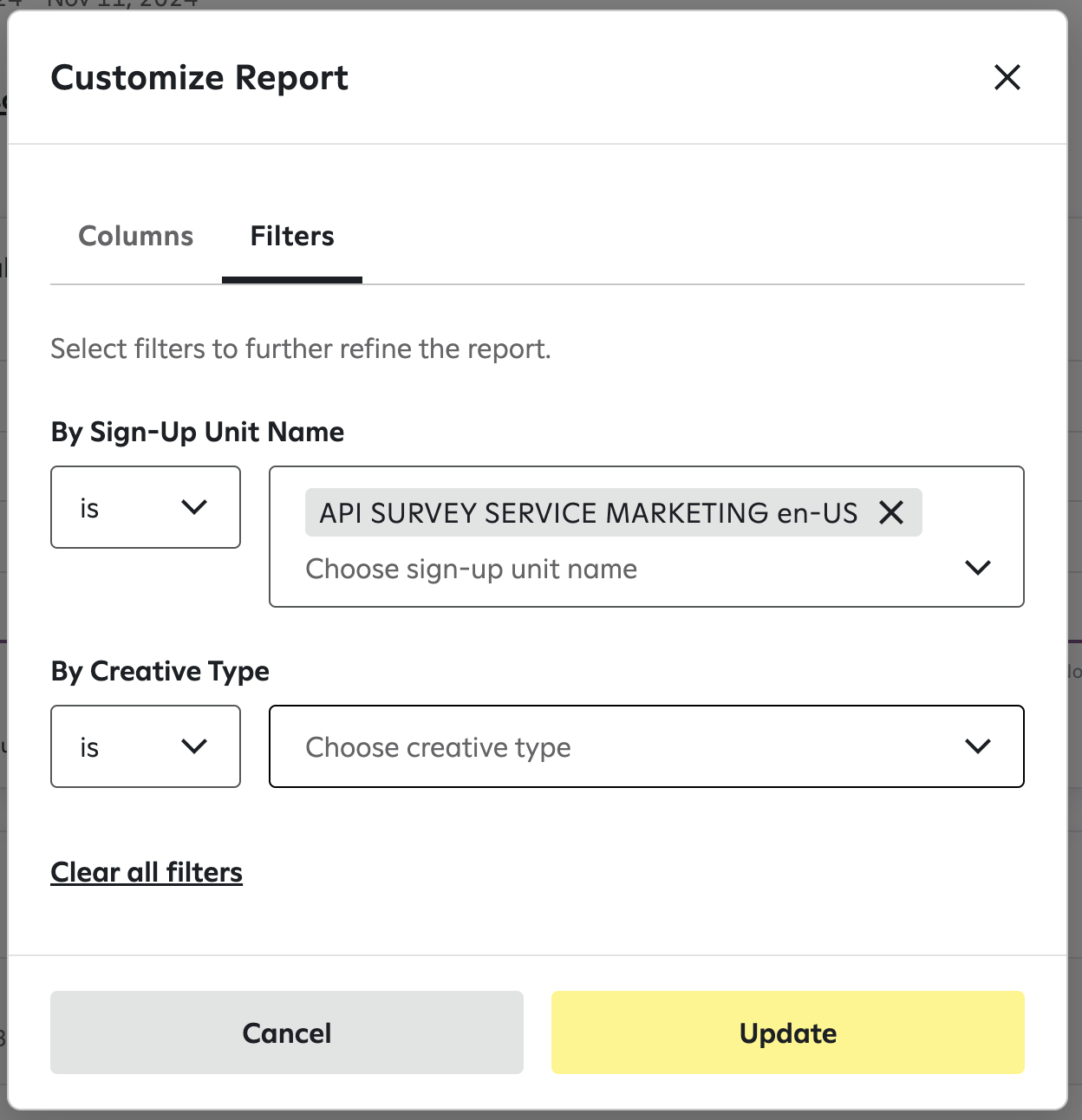 - By Sign-Up Unit Name: ‘API SURVEY SERVICE MARKETING en-US’