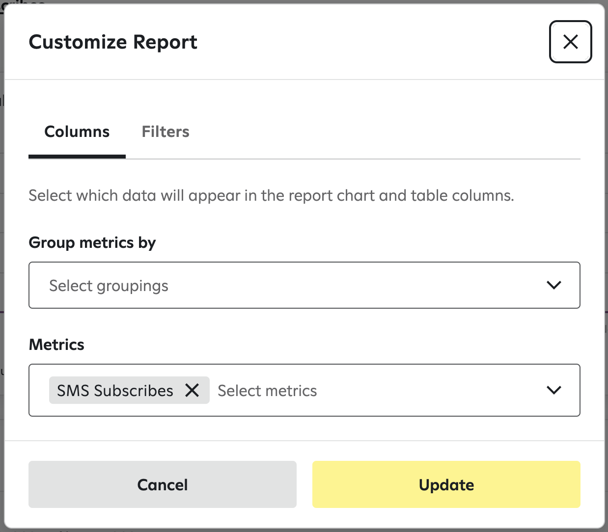 - Metrics: ‘SMS Subscribes’